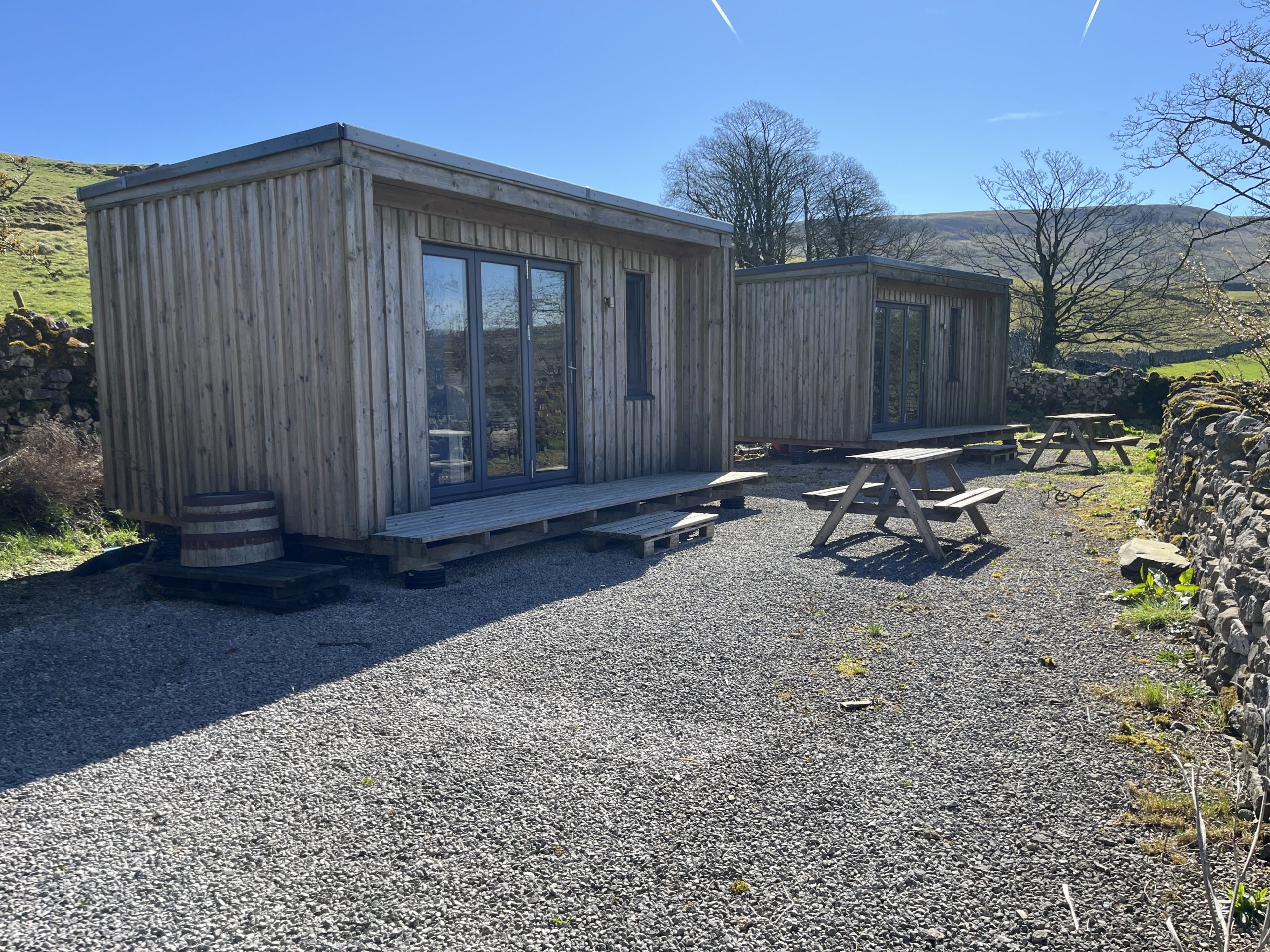 To the side of the barn are two luxury glamping pods with permission approved for a further two.