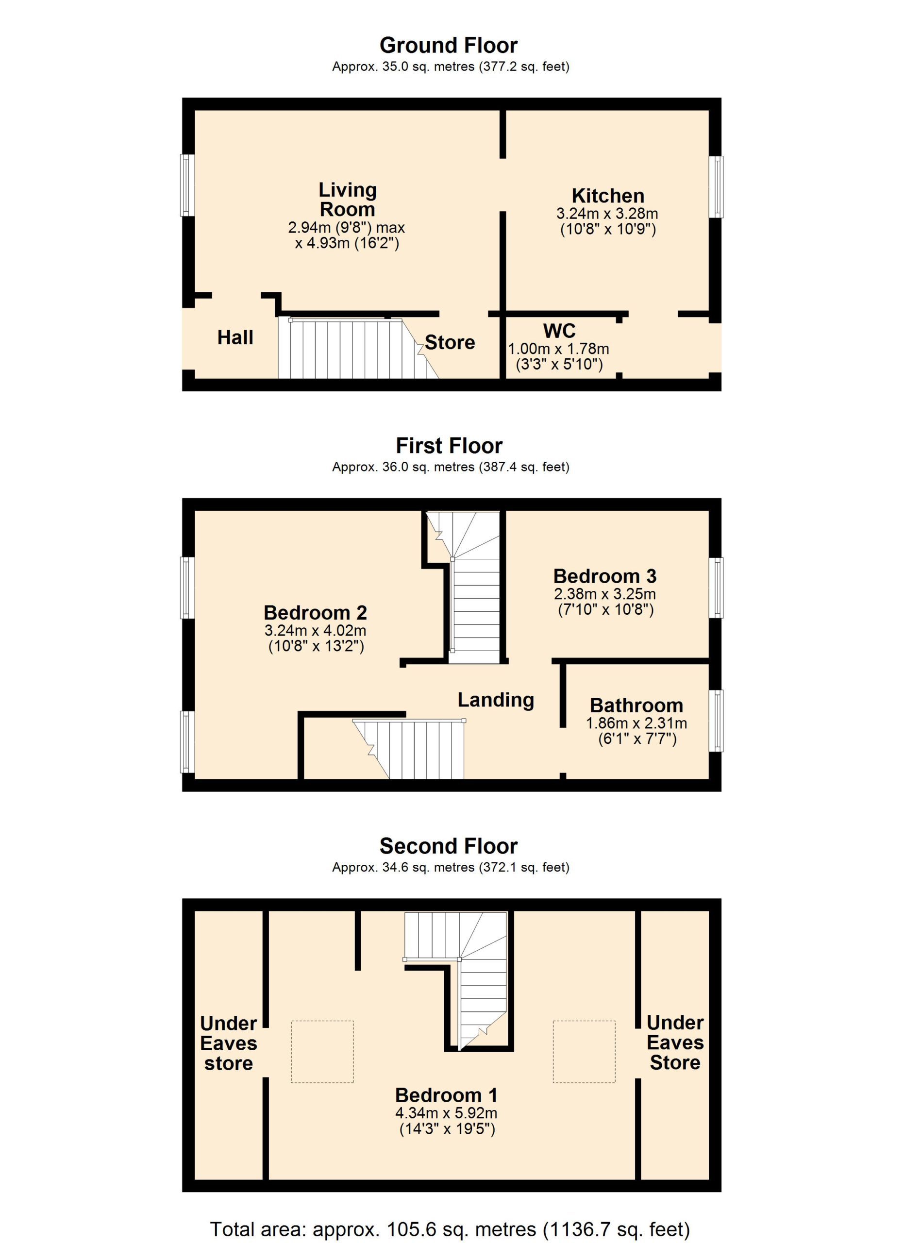 Landing, Bedroom 2, Bedroom 3, Bathroom.
